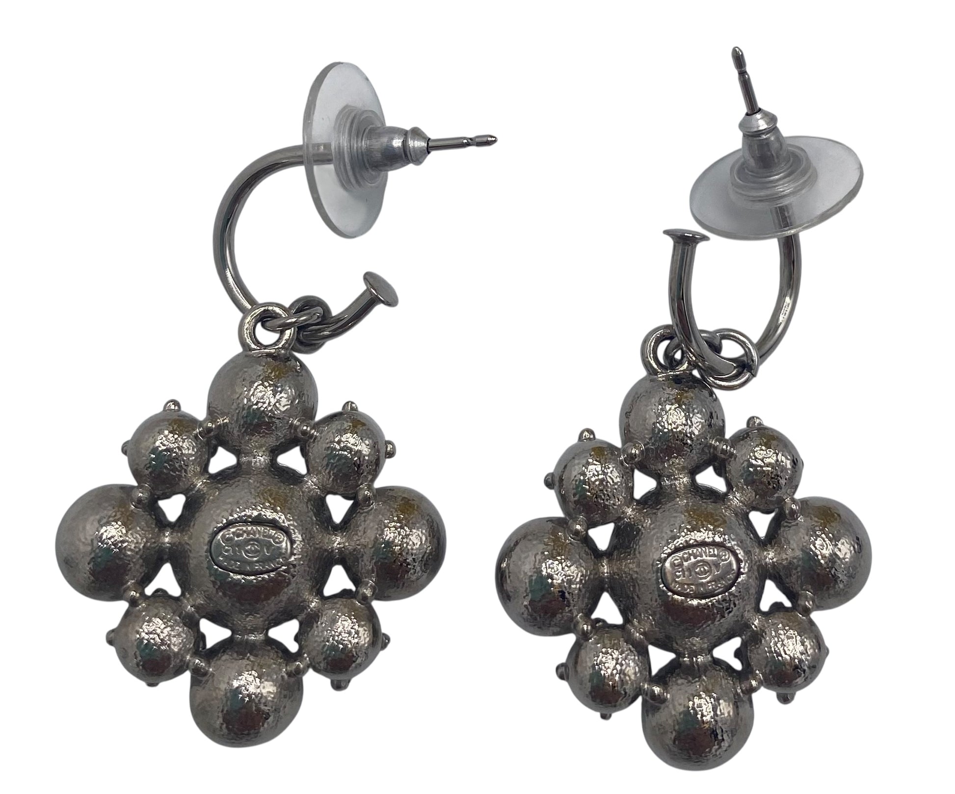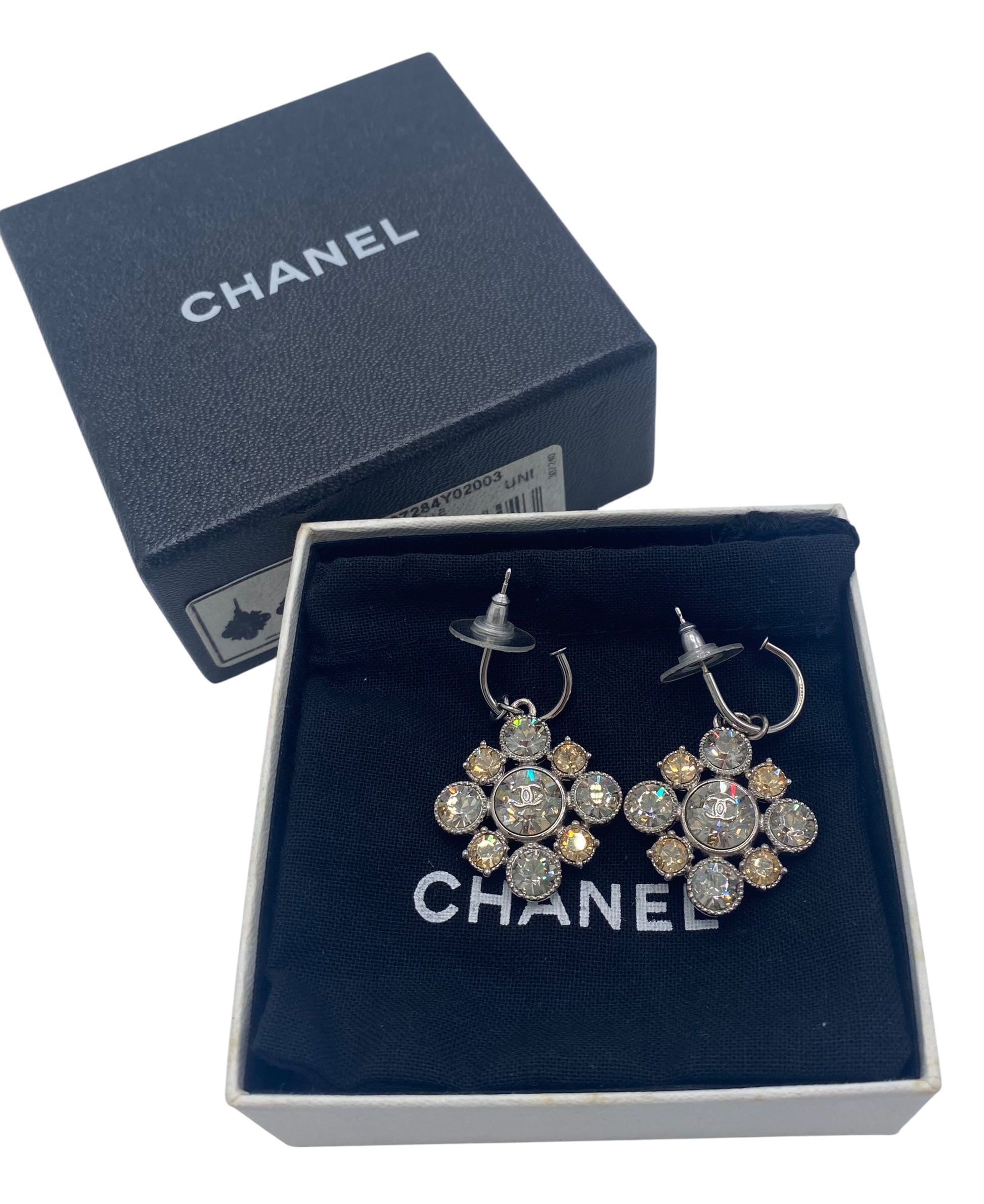 NIB Chanel Classic Crystal CC Hoop Dangle Drop Earrings
