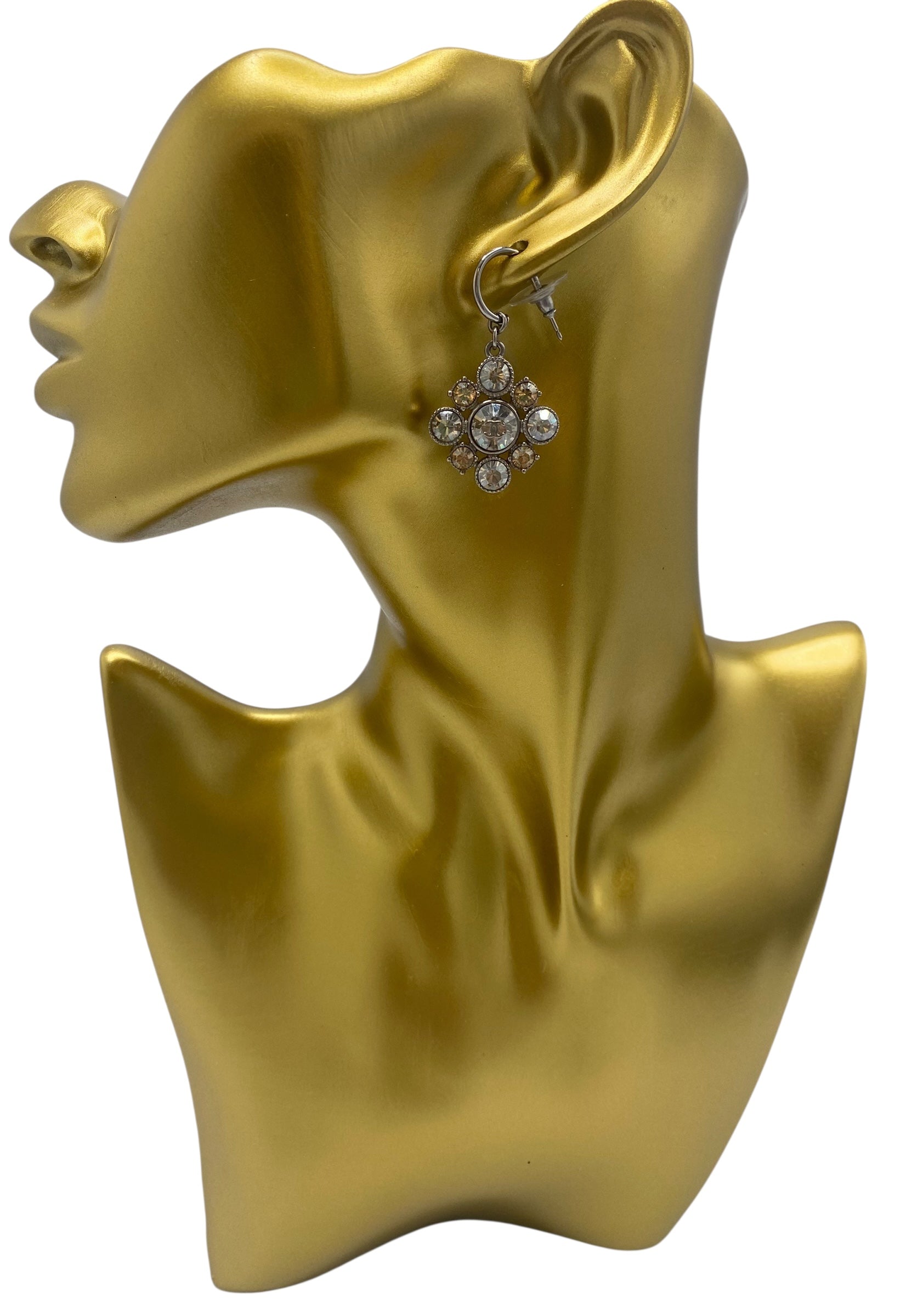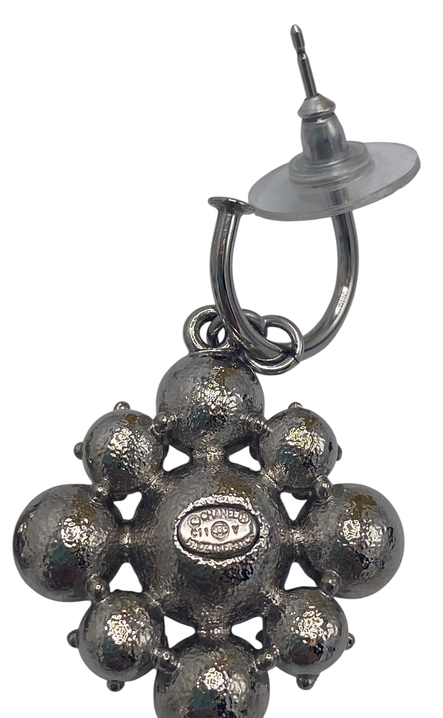 These Classic crystal earrings are crafted in silver with a CC logo in the center and crystals surrounding the center.